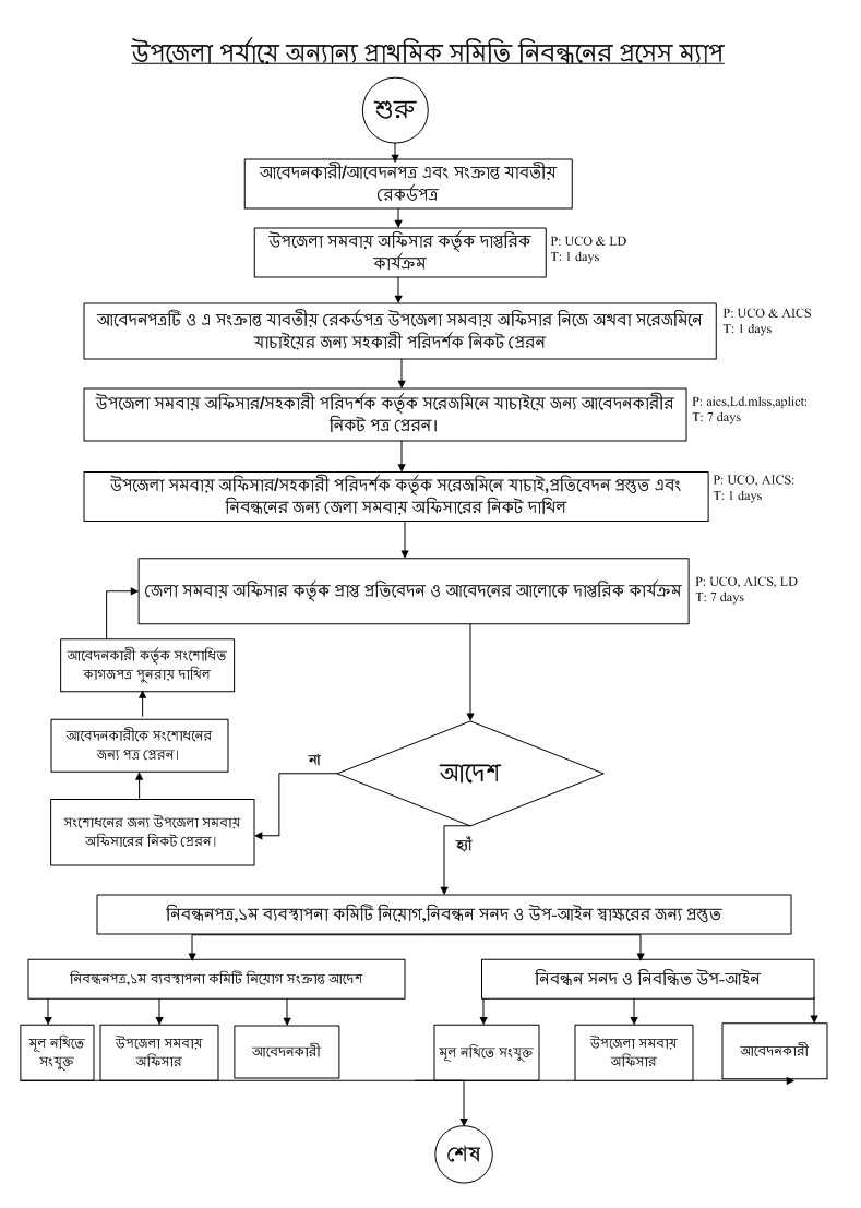 উপজেলা পর্যায়ে অন্যান্য প্রাথমিক সমিতি নিবন্ধনের প্রসেস মাপ